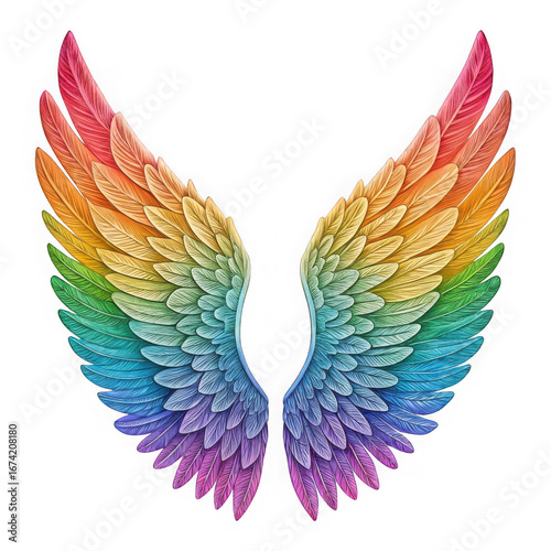 wing, rainbow, angel, colourful, gradient, feather, isolated, freedom, flight, magic, fantasy, spiritual, bright, vibrant, design, element, graphic, illustration, white background, heaven, dream, imagination, creativity, art, beauty, elegance, decorative, symbol, love, hope, joy, peace, success, inspiration, website, banner, marketing, presentation, background