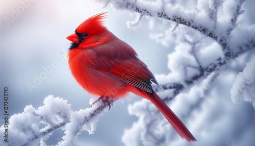 Vibrant Red Cardinal on a Snowy Branch – Winter Wonderland with Glowing Lights.