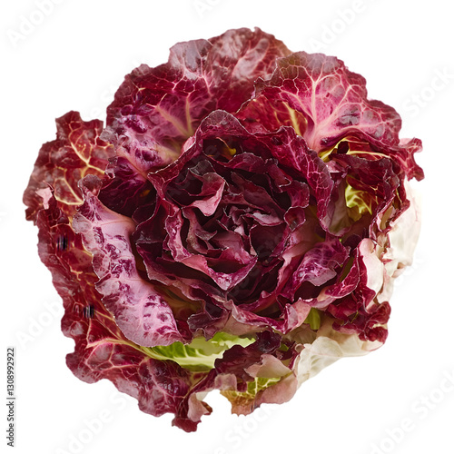 Vibrant red iceberg lettuce close-up isolated on white background food photography studio setting minimalist view freshness concept