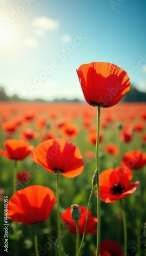 Vibrant red poppy field, sunlit, abstract texture, texture, saturated