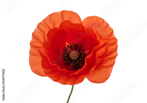 Vibrant red poppy flower isolated against a deep black background in full bloom
