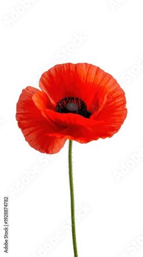 poppy, flower, red, vibrant, elegant, nature, flower petals, stem, green, plant, botany, beautiful, delicate, center, upright, natural, background, white, simple, isolated, closeup, photo, botanical, garden, spring, summer, wildflower, radial, symmetry, organic, fresh, pure, radiant