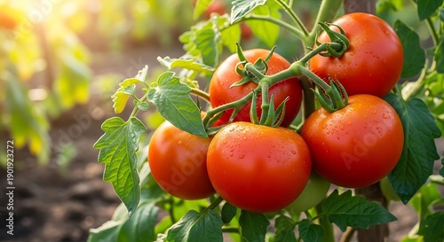 Vibrant Red Tomatoes Ripening on the Vine in Sunlight.