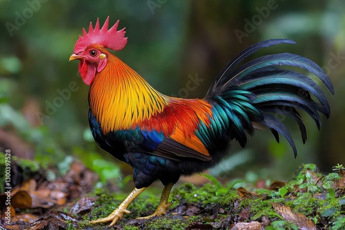 rooster, rainforest, colourful, nature, wildlife, bird, vibrant, forest, fauna, animal, tropical, feather, outdoors, exotic, avian, habitat, environment, scenery, lush, bright, cock, pet, domestic, natural, ecosystem, beauty, plumage, landscape, sunny, free, roam, majestic, feathered, wild, strut, serene, biodiversity, free-range, picturesque, high-coloured