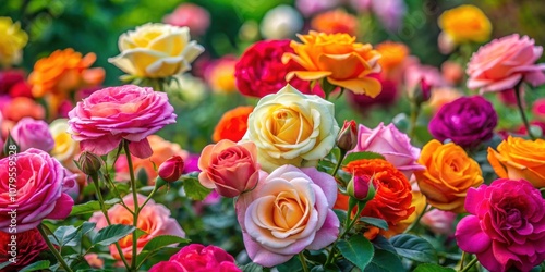 Vibrant rose flower garden desktop wallpaper with blooming roses in various colors , roses, flowers, garden, vibrant, desktop