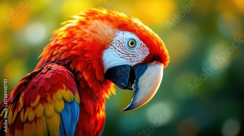 Vibrant scarlet macaw parrot with detailed feathers