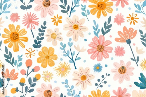 vibrant seamless pattern of orange and yellow flowers on light watercolor background