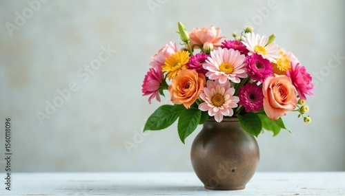 Vibrant Spring Bouquet in Rustic Vase Fresh Flowers Bursting with Color, Perfect for Home Decor and Interior Styling