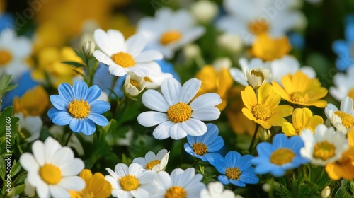 spring, garden, flower, colourful, vibrant, white, yellow, blue, sunlight, flourishing, nature, beauty, botany, bloom, season, plant, landscape, flora, fresh, photo, brightness, growth, greenery, decoration, springtime, colours, environment, peaceful, cheerful, sunny, bright, lush, botanical, aesthetic, scenery, tranquil, elegance, space, relaxation, rainy, field, hobby, outdoors, seasonal