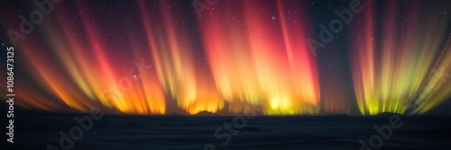 Vibrant streaks of light illuminate the polar skies as stars twinkle in the background, aesthetic spectacle, northern lights, starry night