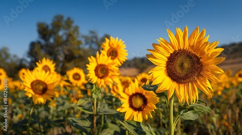 Vibrant Sunflower Field Under a Clear Blue Sky.