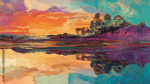 Vibrant Sunset Reflection Over a Tranquil Landscape