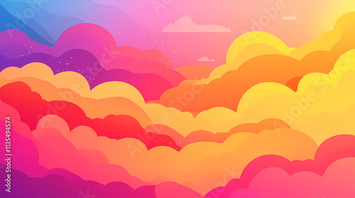 Vibrant sunset sky with pink, orange, and yellow clouds. Nightfall. Illustration
