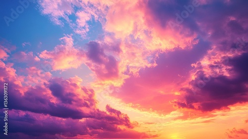 Vibrant sunset sky with pink, purple, and orange clouds. A breathtaking display of colors at dusk.
