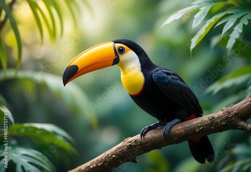 Vibrant Toucan in Lush Rainforest: A Tropical Masterpiece