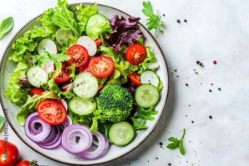 salad, vegetable, healthy, fresh, diet, delicious, tasty, lunch, dinner, broccoli, cucumber, tomatoes, onion, radish, lettuce, plate, food, appetising, nourishment, meal, colourful, freshness, vegetarian