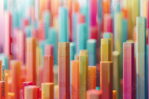 Vibrant vertical blocks of various colors stand tall, creating an abstract, city-like effect with a pleasing gradient and soft focus background.