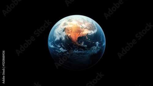 Vibrant view of Earth from space showcasing continents and oceans illuminated against a dark background, emphasizing our unique planet's beauty.
