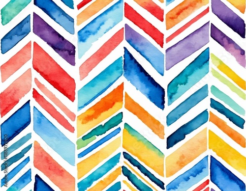 Vibrant Watercolor Chevron Pattern With Multicolored Abstract Zigzag Stripes