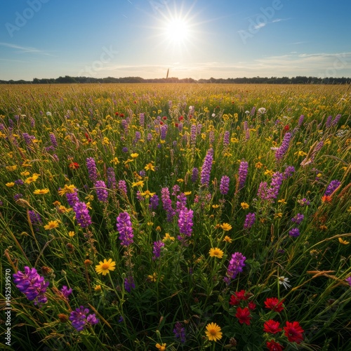 wildflower, meadow, field, flower, summer, nature, landscape, sunset, sun, bright, colourful, vibrant, flora, plant, bloom, blossom, purple, yellow, red, orange, green, daytime, scenic, beautiful, pretty, harmony, serene, peaceful, tranquil, calm, joyful, optimistic, hopeful, growth, abundance, life, energy, vitality, fresh, gold, hours, floral