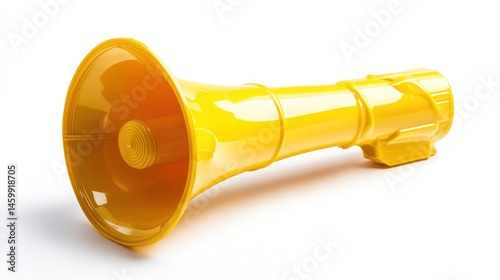 megaphone, loudspeaker, bullhorn, yellow, announcement, communication, sound, voice, broadcast, public, address, equipment, tool, plastic, object, isolated, background, white, studio, shot, bright, colours, shiny, glossy, clean, modern, design, contraption, item, device, instrument, audio, amplifier, speaker, promotion, marketing, advertising, sale, event, rally