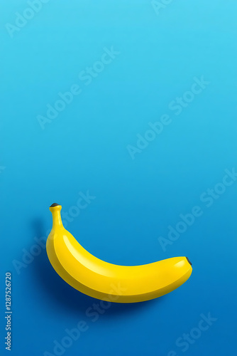 Vibrant Yellow Organic Banana on Blue Textured Background - Minimalist Food Photography for Healthy Snacking and Vitamin-Rich Diets