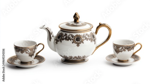 Victorian porcelain tea set isolated on white background.