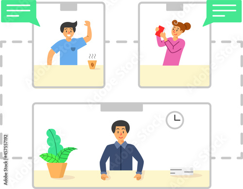 people, communication, cooperation, education, together, telecommuting, vector, connection, cyberspace, laptop, online, connecting, media, working, business, social, screen, man, quarantine, learning, sharing, meeting, remote, workplace, home, human resources, teleconference, distance, woman, network, smart, teamwork, virtual, notebook, computer, corporate, concept, cloud, team, global, work, digital, web, freedom, freelance, technology, modern