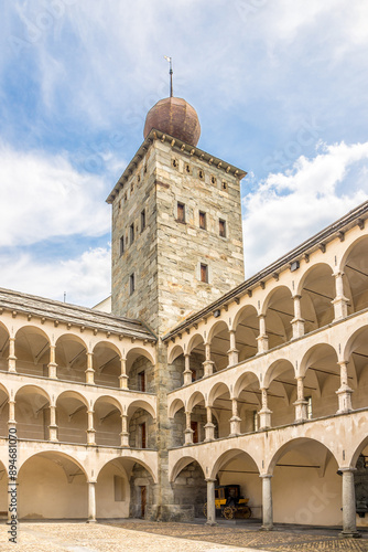 View at the Courtyard of Stockalperschloss castle in Brig town, Switzerland