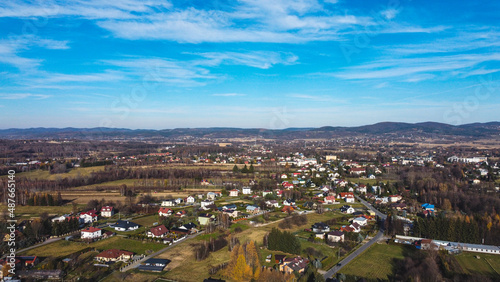 View from a loom city drone during sunny weather in autumn