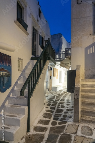 alleyway, architecture, building, building exterior, city, city landscape, culture, destination, exterior, greece, greek culture, landmark, mediterranean, mykonos, night photography, night scene, old, perspective, scenic, stair, street lighting, tour tourism, town, travel, travel destination, twilight, city landscape, view