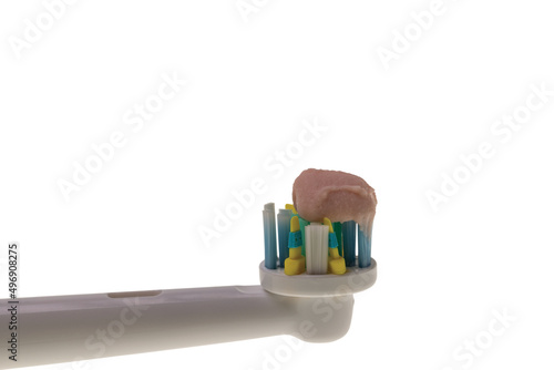 View of automatic toothbrush head with toothpaste isolated on white background. Sweden