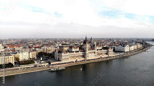view of Budapest and the Danube and parliament from a bird's-eye view