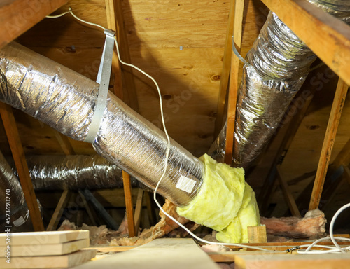 attic, fiberglass, air conditioning, background, check, circulation, cleaning, conditioner, cooling, current, duct, energy, equipment, fitting, flexible, heating, homeowner, inspection, installation, insulation, maintenance, picture, pipe, pipeline, piping, power, problem, repair, substitution, service, supply, system, technician, technology, temperature, ventilated, ventilation, wire