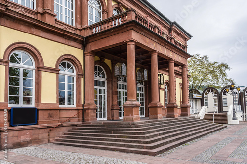 View of Saalbau (1871 - 1873) - centre of cultural life in Neustadt. Neustadt-an-der-Weinstrasse - town in Rheinland-Pfalz, heart of German Wine Road (Deutsche Weinstrasse).