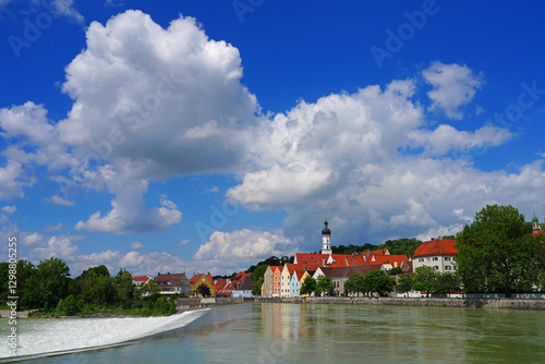 View of the German town of Landsberg am Lech, a picturesque medieval town on the Lech River in Bavaria