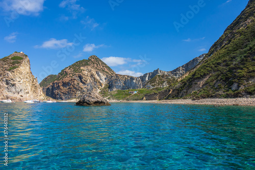 View of the rocky coast in Palmarola island (Ponza, Latina, Italy).