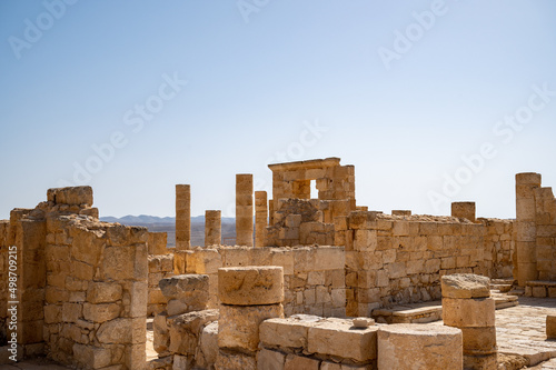 View of the ruined buildings in the ancient Nabataean city of Avdat, now a national Park, in the Negev Desert, Southern Israel