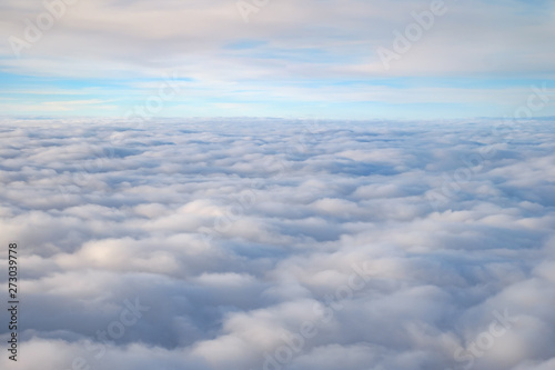 View over the clouds from airplane