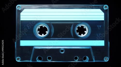 Vintage Audio Cassette with Transparent Design Featuring Modern Digital Touches and Neon Highlights