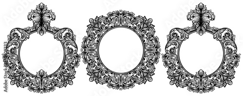 Vintage baroque frame decor set collection. Detailed ornament vector illustration