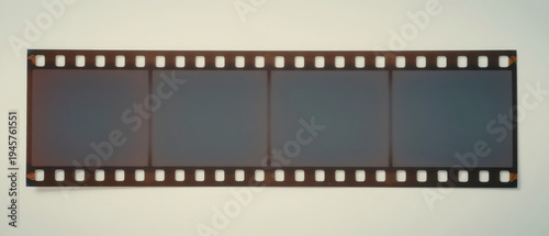 Vintage Film Strip with Four Exposed Frames and Sprocket Holes Resting on a Neutral Background for Photography or Cinematic Projects