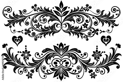 ornament, floral, flower, design, vintage, pattern, vector, decoration, swirl, set, frame, art, element, scroll, border, leaf, illustration, ornate, tattoo, decor, black, silhouette, baroque, shape, style