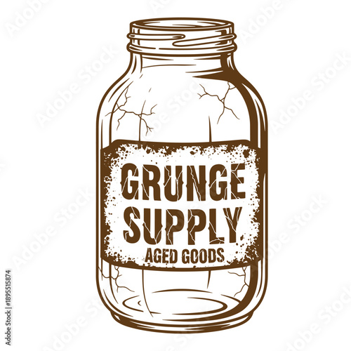 Vintage Grunge texture illustration of a vintage glass jar with a label saying grunge supply aged goods