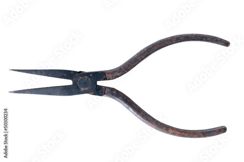 vintage iron pliers on a white background