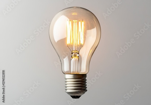 Vintage Light Bulb Emitting Warm Glow Against Neutral Background