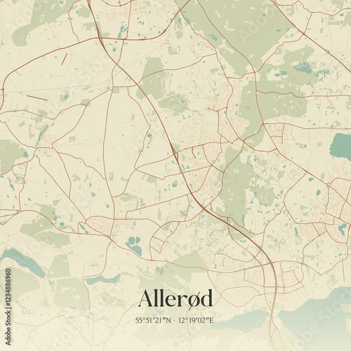 Vintage map of Allerød, Denmark.
