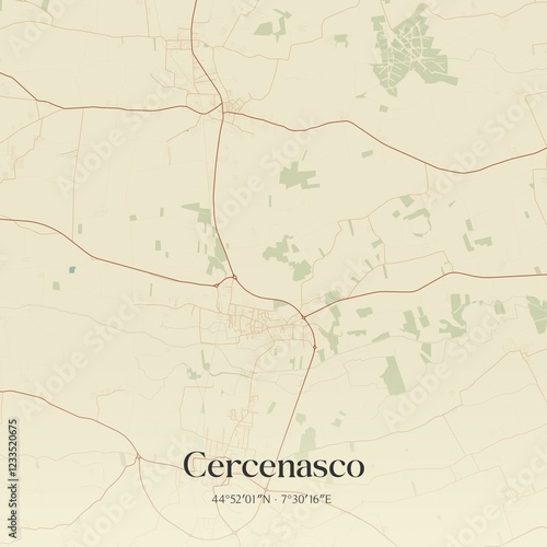 Vintage map of Cercenasco, Italy.