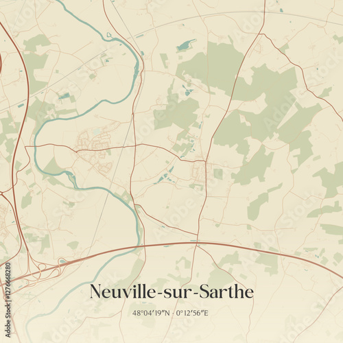 Vintage map of Neuville-sur-Sarthe, France.