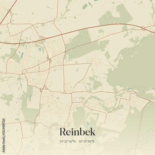 Vintage map of Reinbek, Germany.